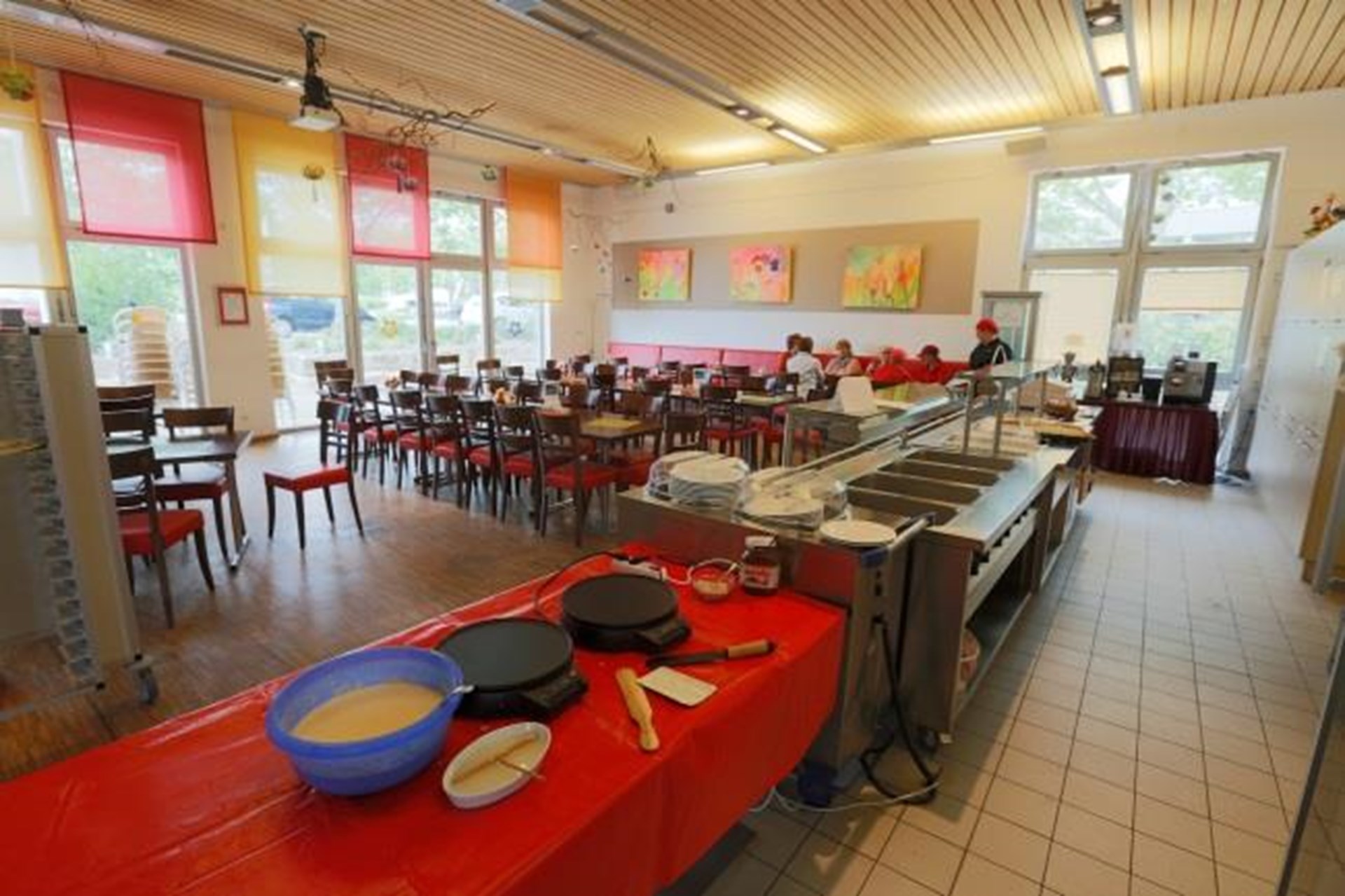Zudem kommen die Kinder der benachbarten Theodor-Heuss-Grundschule, Ingelheim in das Café, um hier ihre Mittagsmahlzeit einzunehmen.